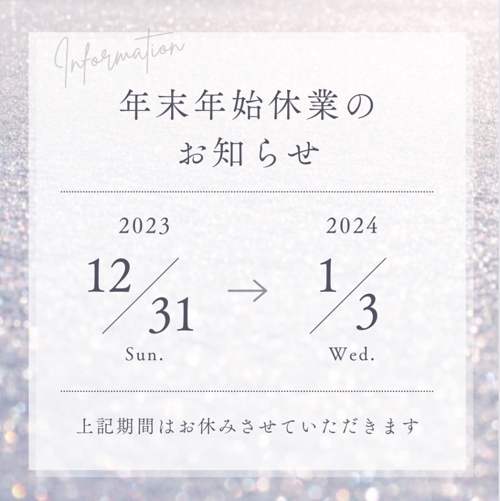 誠に勝手ながら2023/12/31(日)~2024/01/03(水)まで休業いたします。